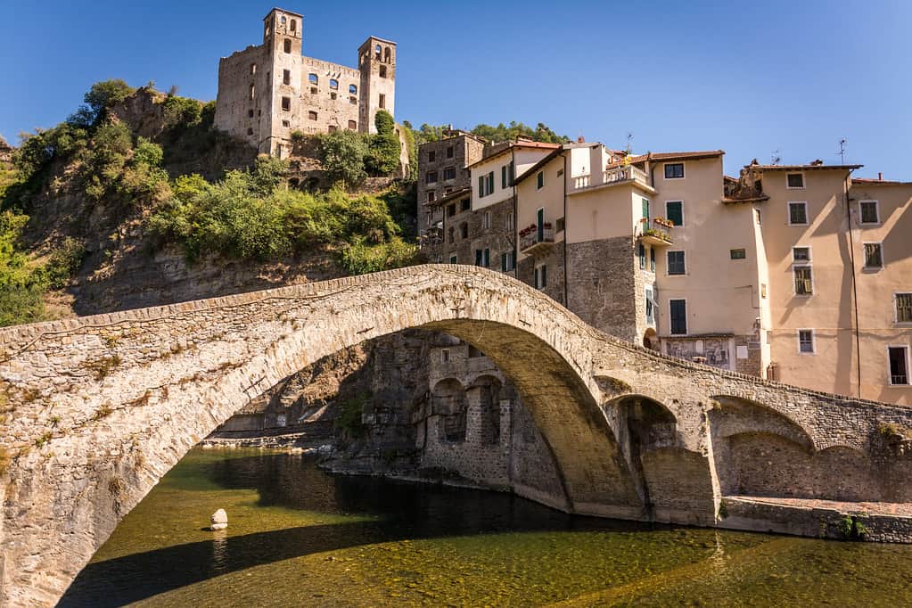 Dolceacqua – Borgo fiabesco sul torrente Nervia, famoso per il suo ponte medievale ad arco e il Castello dei Doria. Le sue viuzze in pietra e le botteghe d’artigianato creano un’atmosfera senza tempo. Qui si producono il rinomato vino Rossese di Dolceacqua e le 'michette', dolce tipico preparato con farina, zucchero e olio d’oliva
